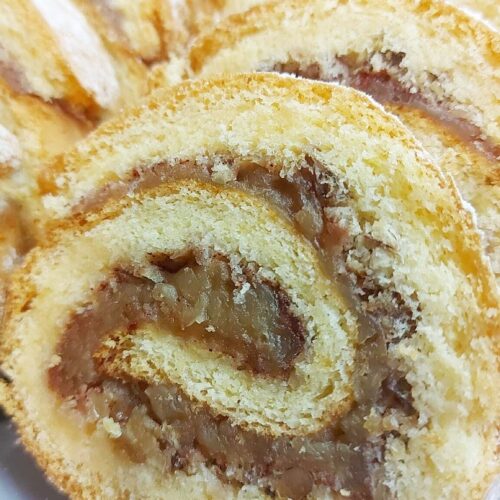 Keep the apple roll cake in plastic wrap at room temperature for 1-2 days or fridge up to 3-4 days.