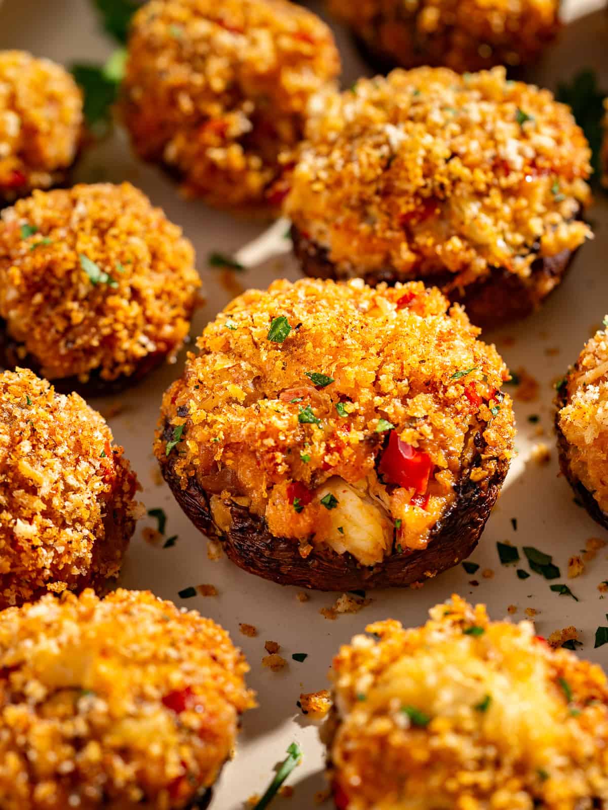 These crab stuffed Portobello mushrooms are filled with a creamy, Cajun-spiced crab mixture and topped with a golden, crunchy topping. They bake up rich and savory, perfect for an appetizer or part of a party food spread. Go to recipe.