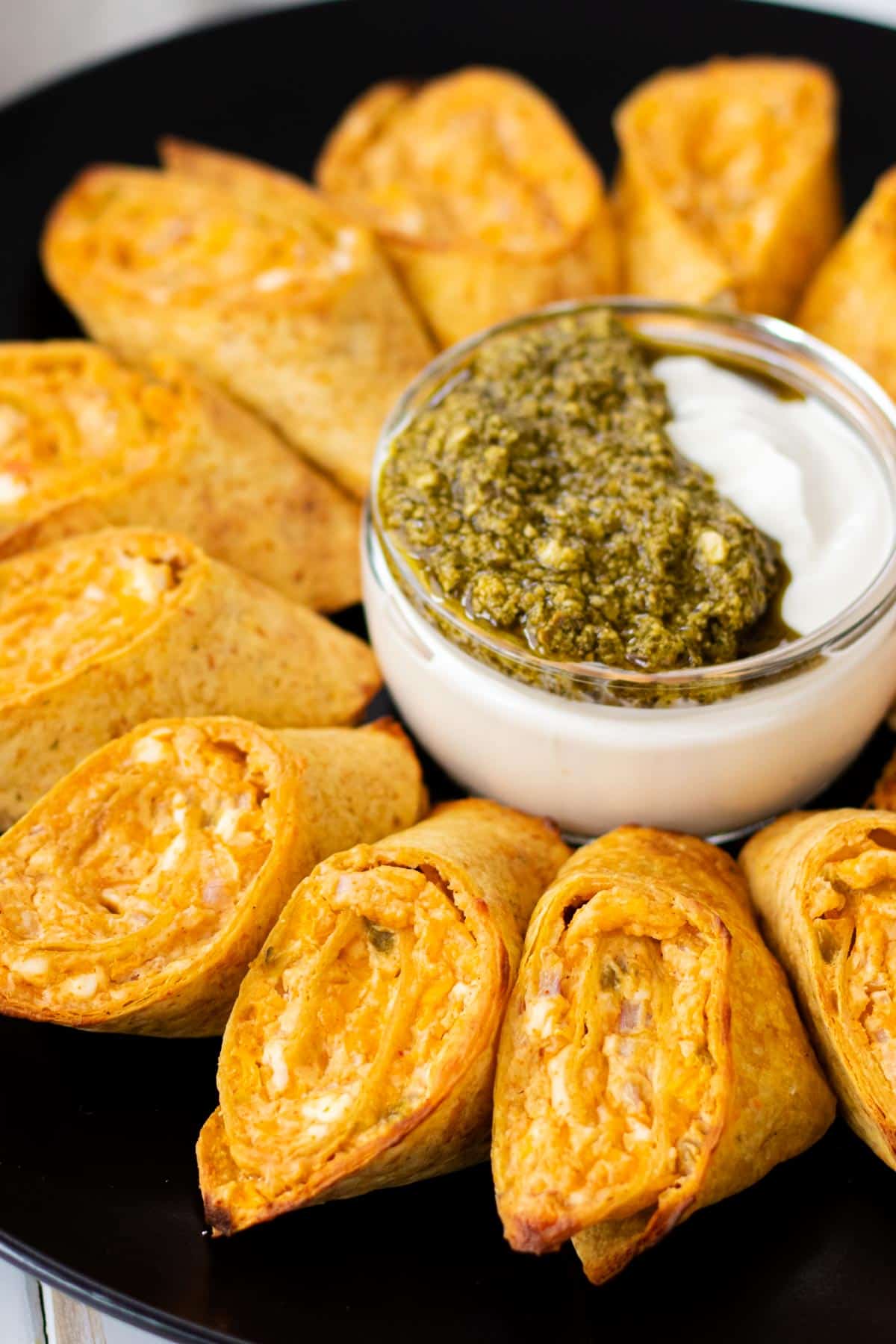These pinwheel sandwiches feature a delightful combination of creamy, cheesy refried bean fillings wrapped in tortillas and cut into bite-sized treats. Go to recipe.