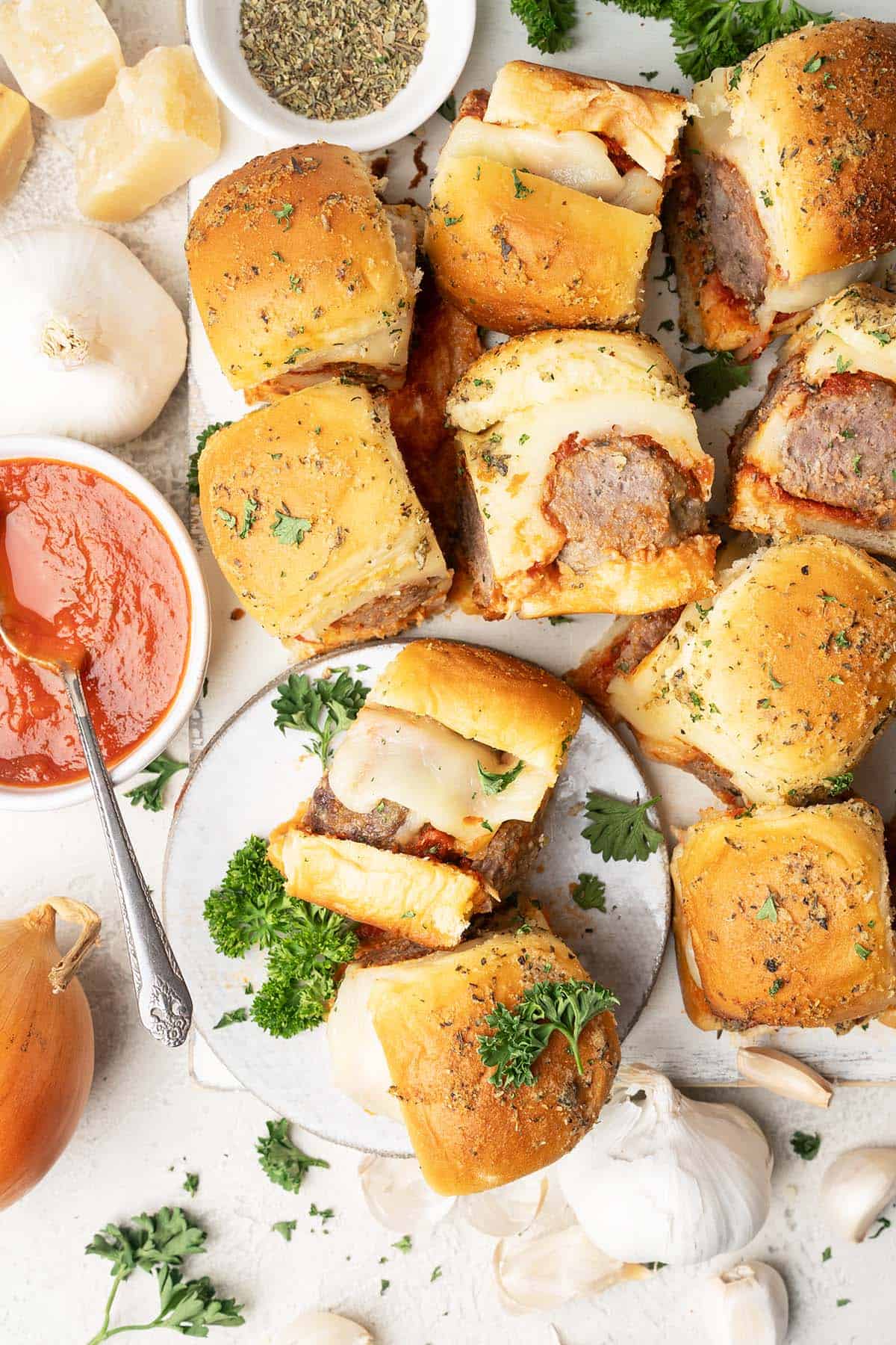 This meatball sliders recipe pairs sweet Hawaiian rolls with Italian meatballs, marinara sauce, plenty of gooey cheese, and a garlic butter sauce on top. It’s the perfect crowd-pleasing appetizer! Go to recipe.