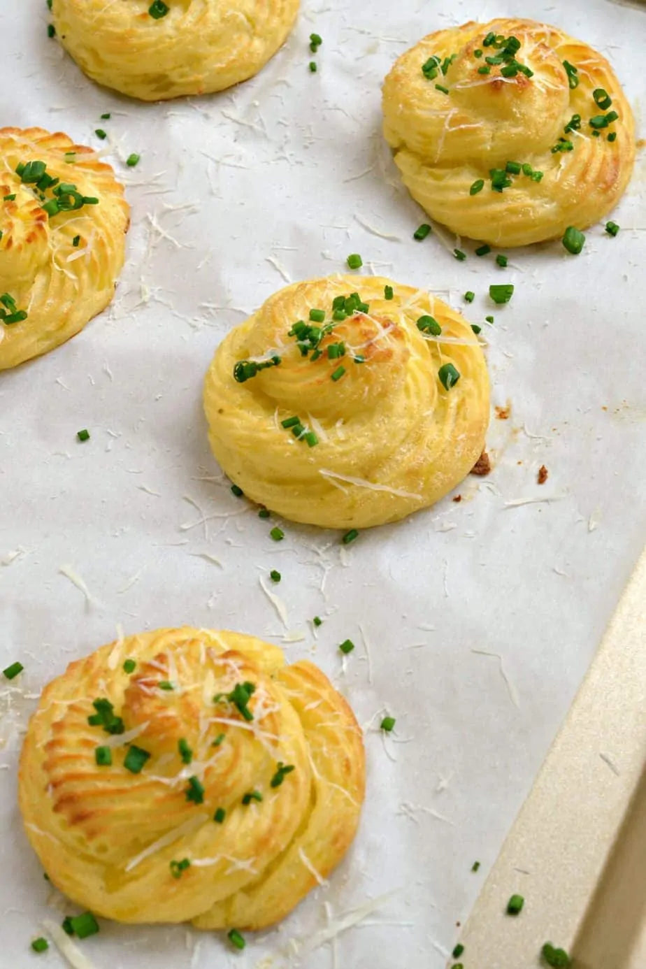 Duchess Potatoes, or pommes duchesse, are little fancy bundles of mashed potatoes that are piped, brushed with butter, and baked till the edges are crispy and browned. They are perfect for small dinner parties yet easy enough for a weeknight meal.
