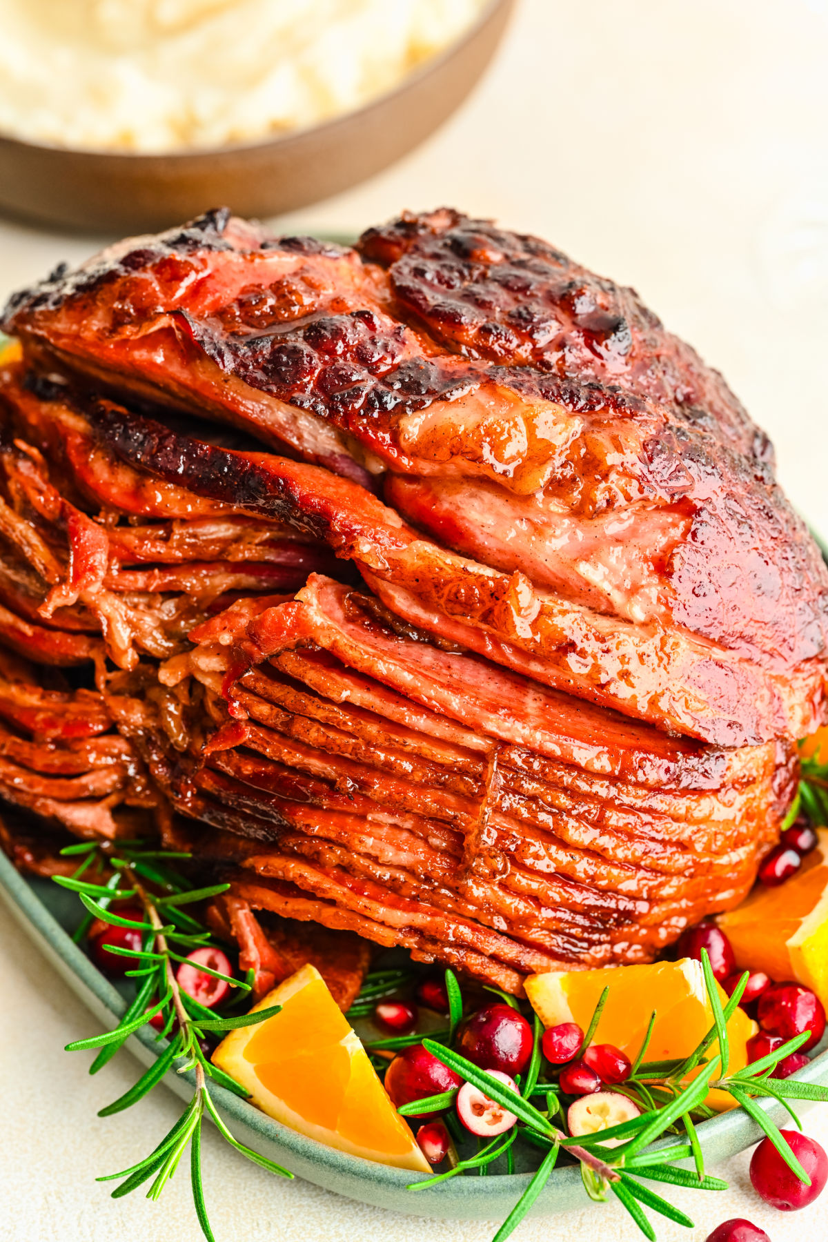 This glazed ham is a showstopper with minimal effort. It’s baked in two stages to keep it juicy on the inside and caramelized on the outside, with a sweet and tangy glaze made from orange marmalade, honey, and Dijon mustard.