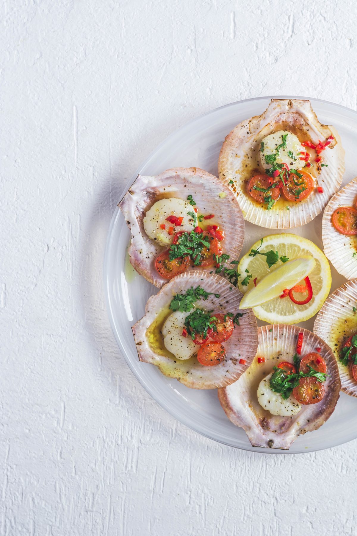 Grilled Scallops with Garlic Butter and Chillies – a showstopper appetizer for your next party or celebration! Perfect Easter food idea to impress. Go to recipe.
