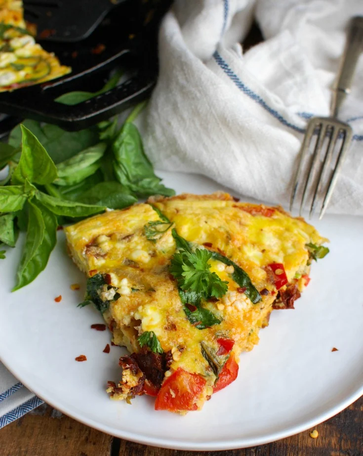 Sun-Dried tomatoes, spinach, red bell pepper, goat cheese and eggs are cooked and then baked to perfection. Serve this at a Easter brunch or make it ahead of time for a quick spring weekday breakfast. Go to recipe.