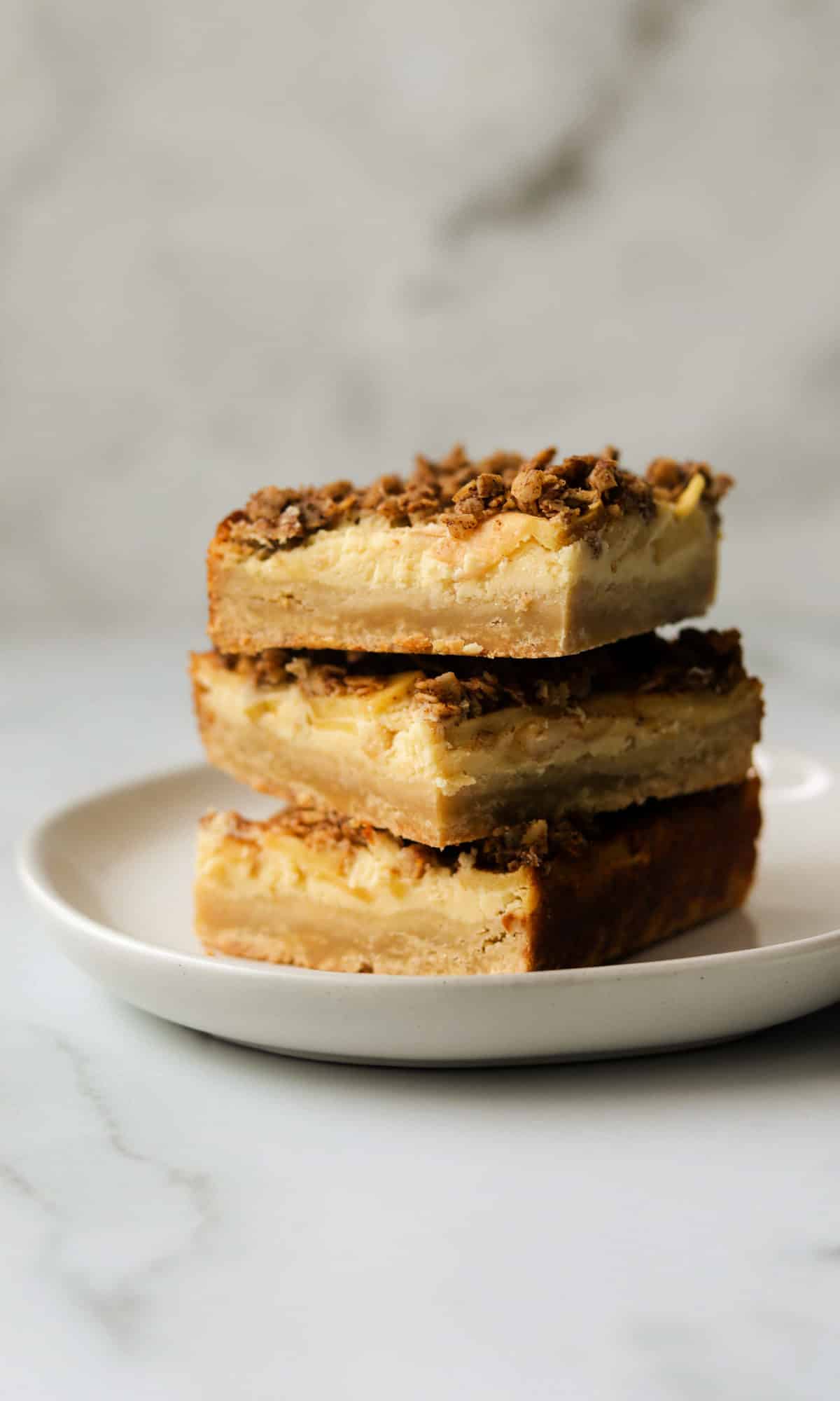 Apple crisp shortbread bars are an actual thing. They’re made with a shortbread crust, mascarpone filling, and honey crisp apple and crumbly oat topping. Go to recipe.