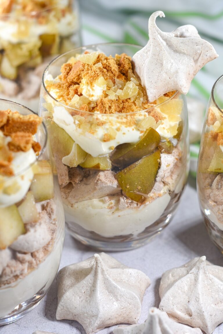 Featuring layers of cinnamon meringue, apple compote, ginger whipped cream, and fresh pears, this autumn-inspired twist on the traditional British Eton mess recipe is one of my favorite desserts for fall. Go to recipe.