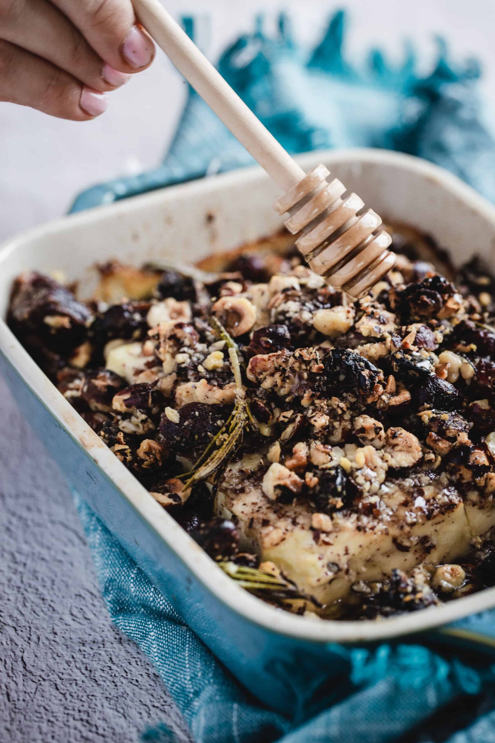 Baked Feta Dip Recipe with Dates, Hazelnuts and Honey