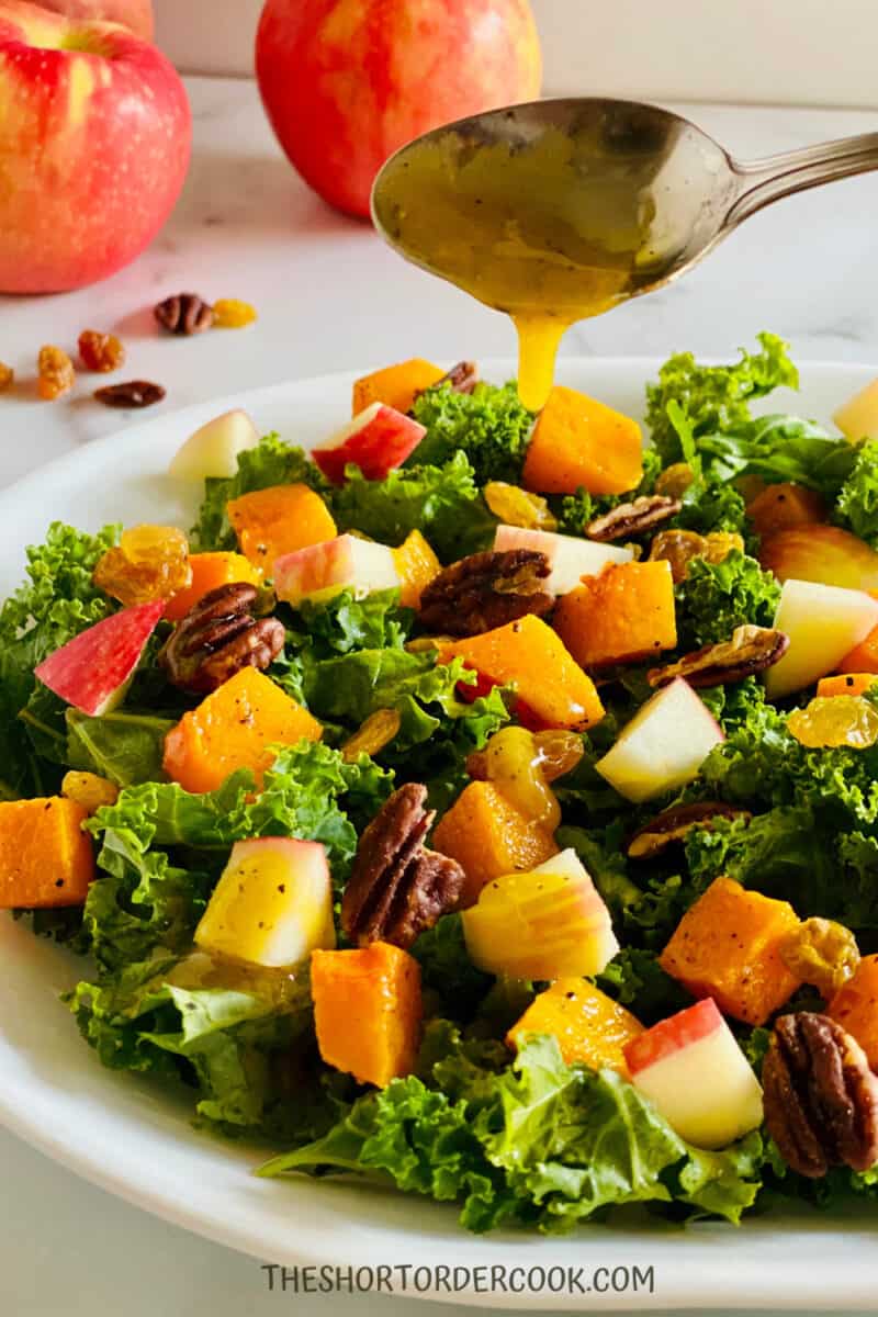 This Butternut Squash and Apple Kale Salad makes a great simple fall or winter salad. The crunchy pecans, crisp apples, sweet raisins, and roasted warm butternut squash creates what I consider the best Autumn harvest salad recipe. Go to recipe.