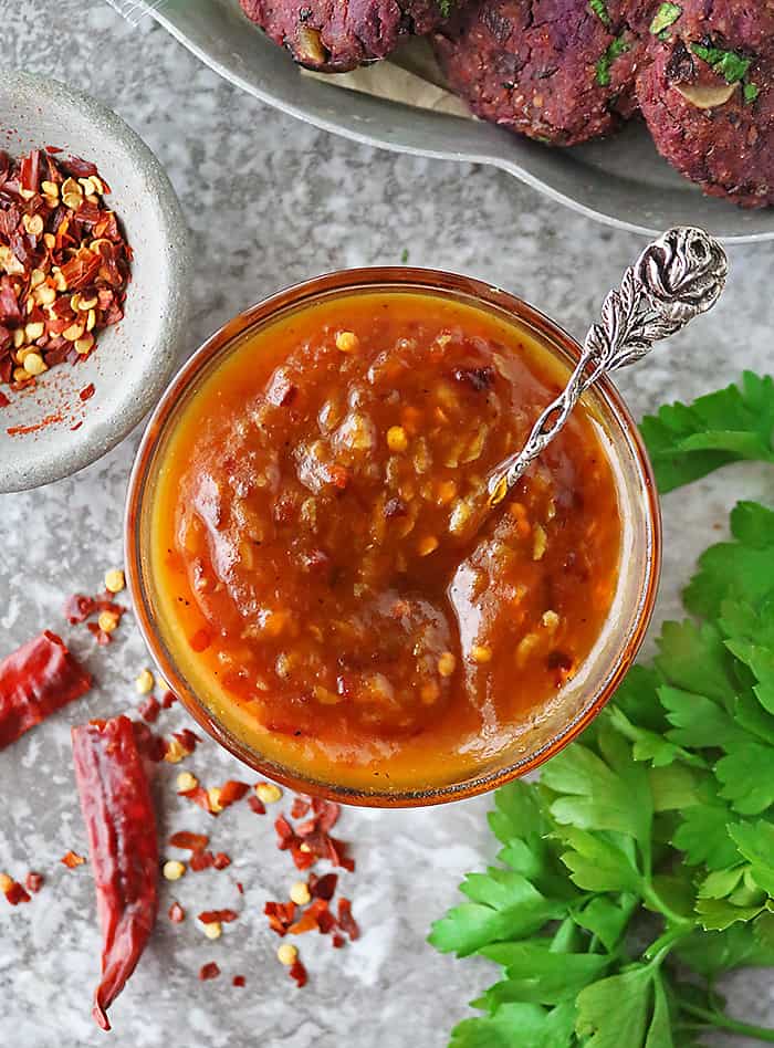 This 5-ingredient Easy Pumpkin Chili Sauce is spicy, sweet, and oh so scrumptious. This sauce can be prepared in less than 10 minutes and pairs perfectly with everything from appetizers, mains, and sides. Go to recipe.