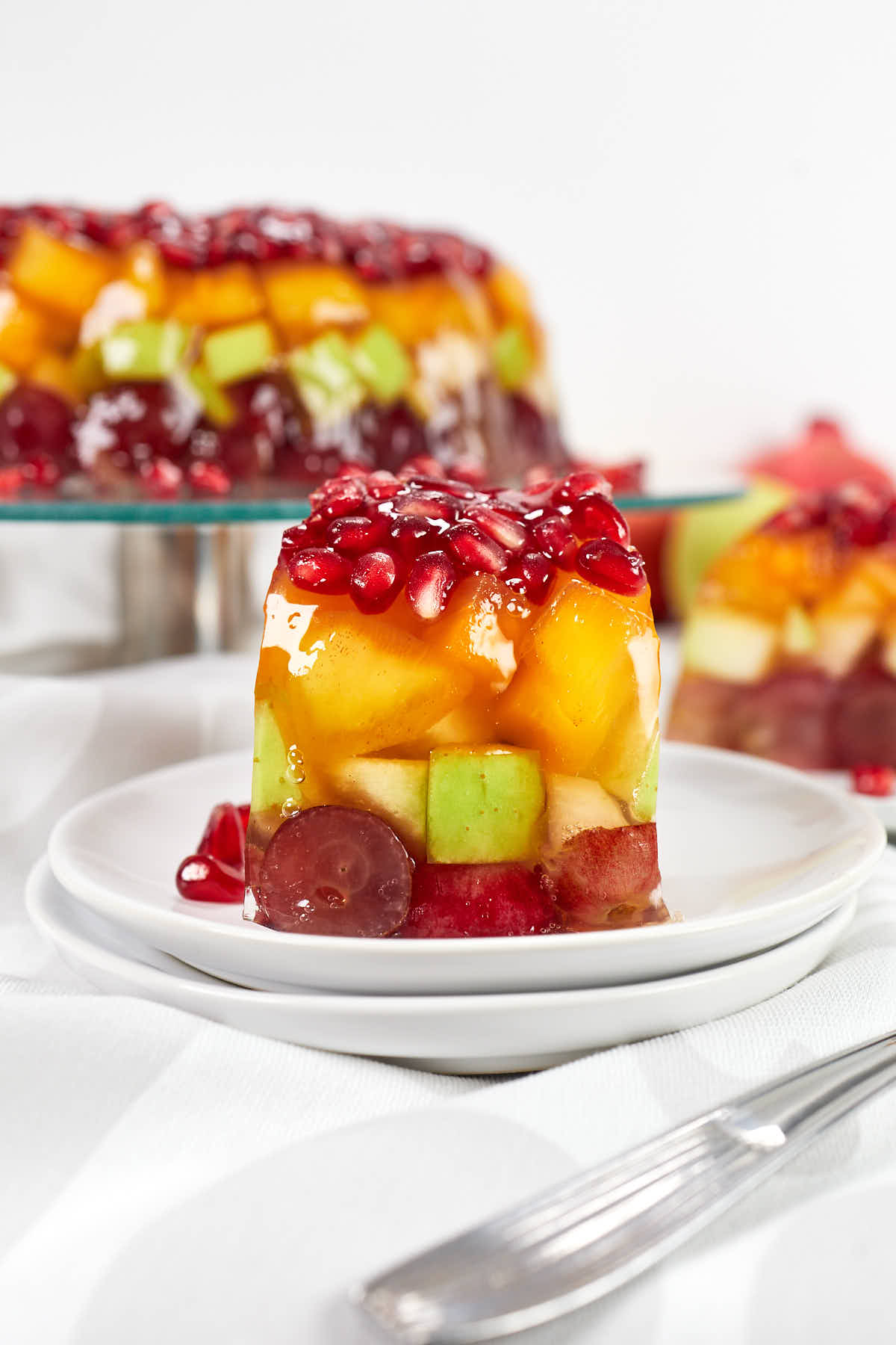 This beautiful and colorful layered fruit cake is made with fresh seasonal fruit, perfect for fall and winter time! It’s a simple and easy no-bake dessert with natural homemade jello made from apple juice. Go to recipe.