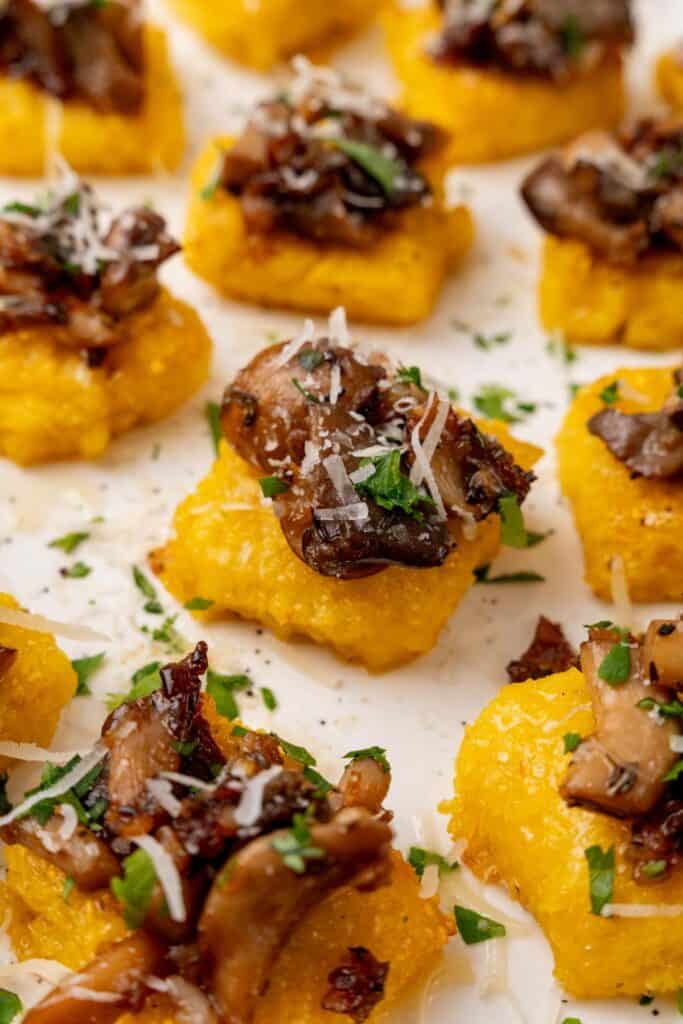 Cheesy Polenta Bites Recipe with Mushroom Topping