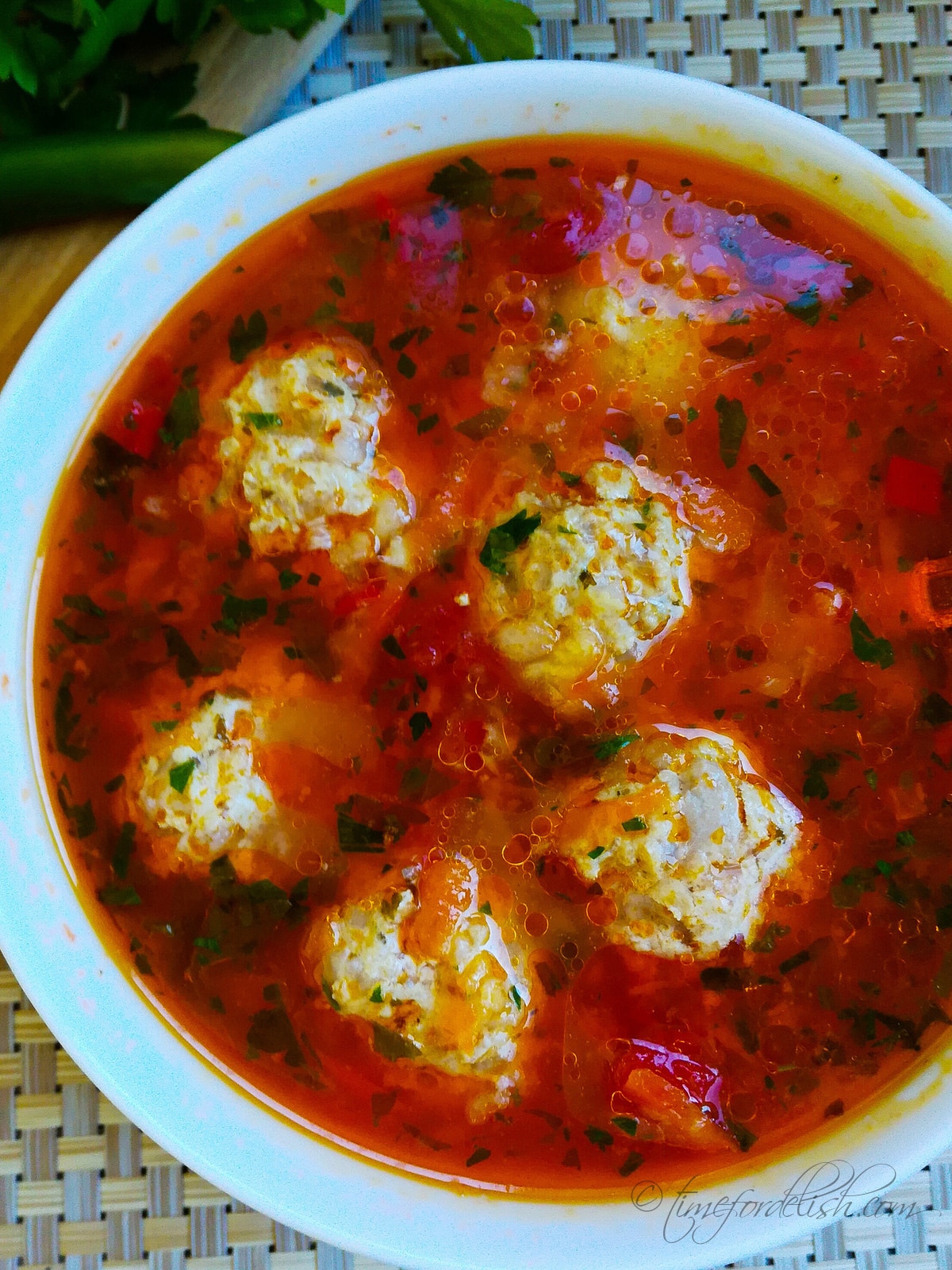 This tasteful Romanian meatball soup with tomatoes and lots of vegetables (ciorba de perisoare) is full of color and vitamins. I grew up eating soups almost daily. My grandmother could not resist more than two days without eating a soup. Go to recipe.