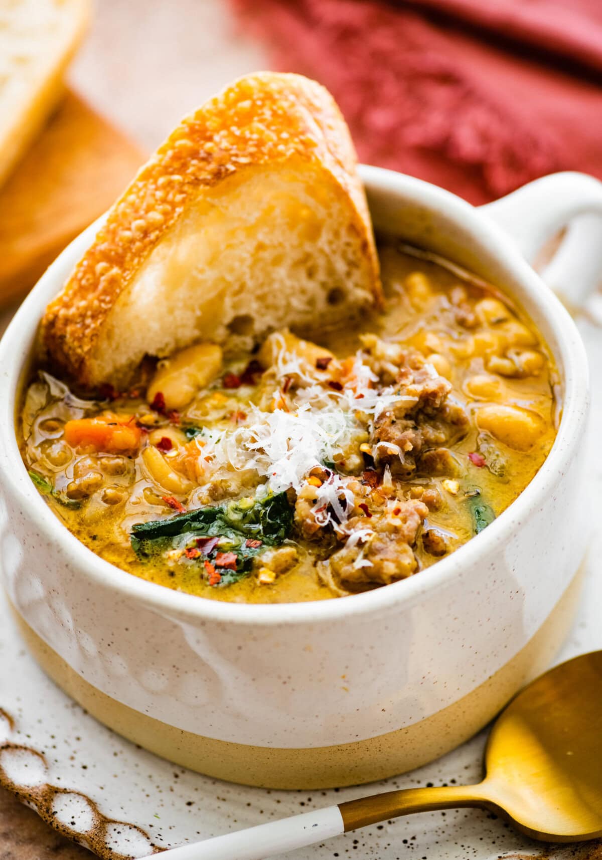 Warm, hearty, and full of bold Italian flavors, this sausage and white bean soup is the cozy comfort food you’ll be craving all season. Go to recipe.