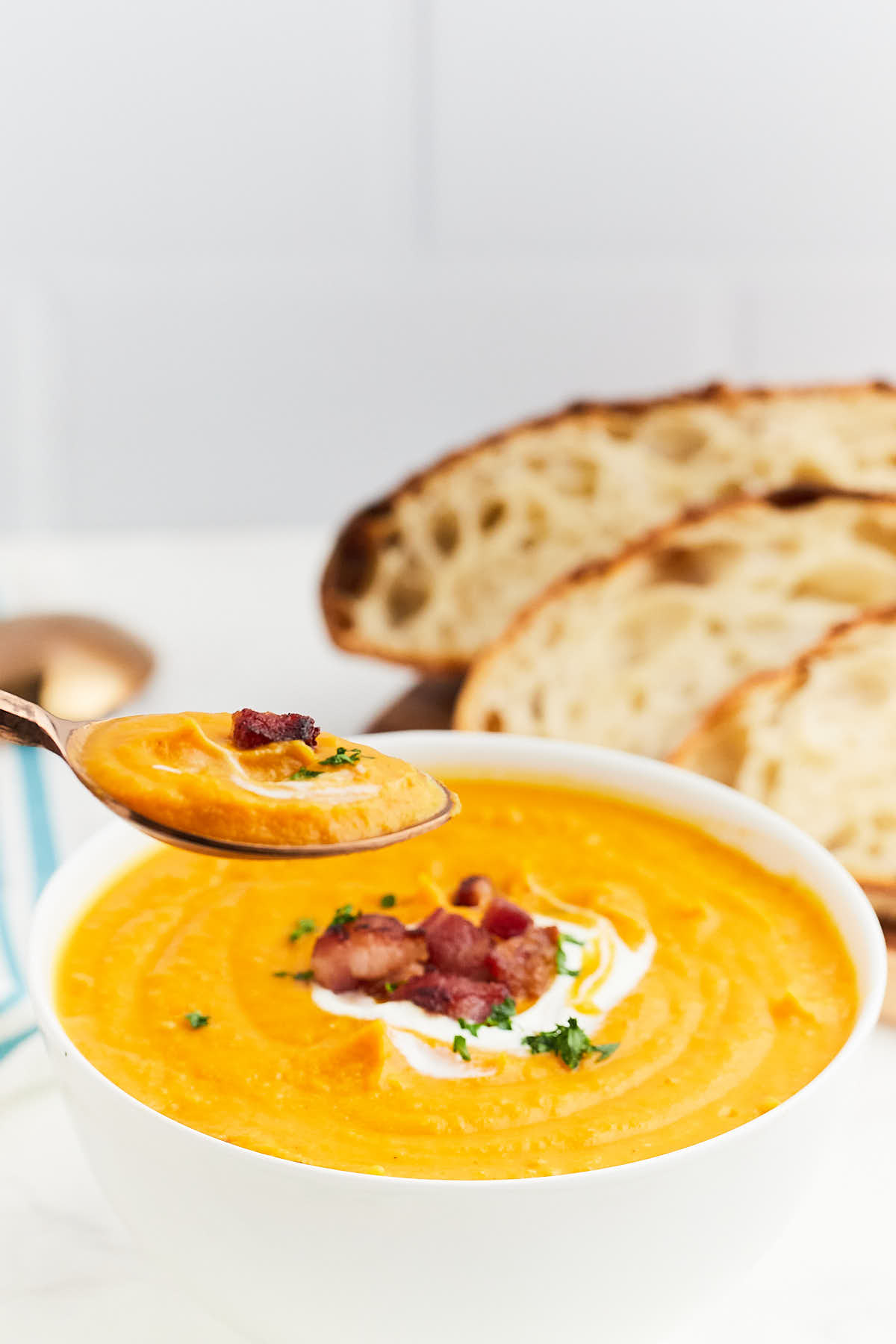 Grab a spoon and enjoy this creamy loaded sweet potato soup, where buttery sweet potatoes, crispy bacon, and fragrant rosemary come together in one insanely delicious and cozy bowl. Go to recipe.