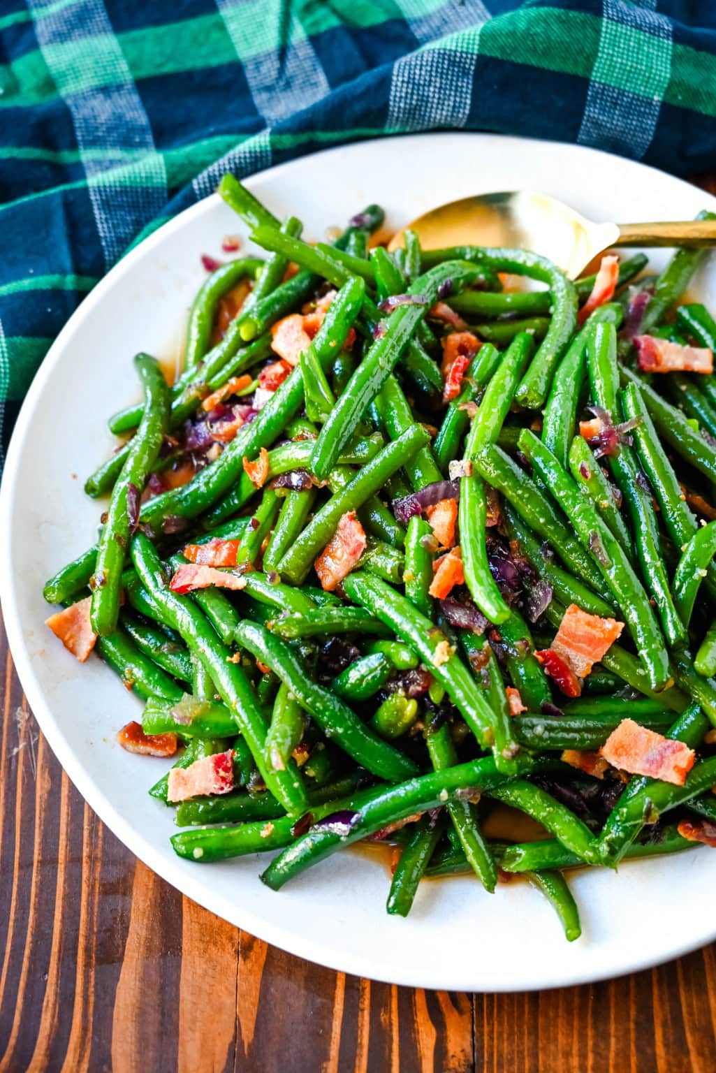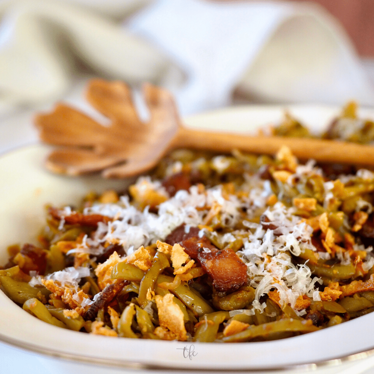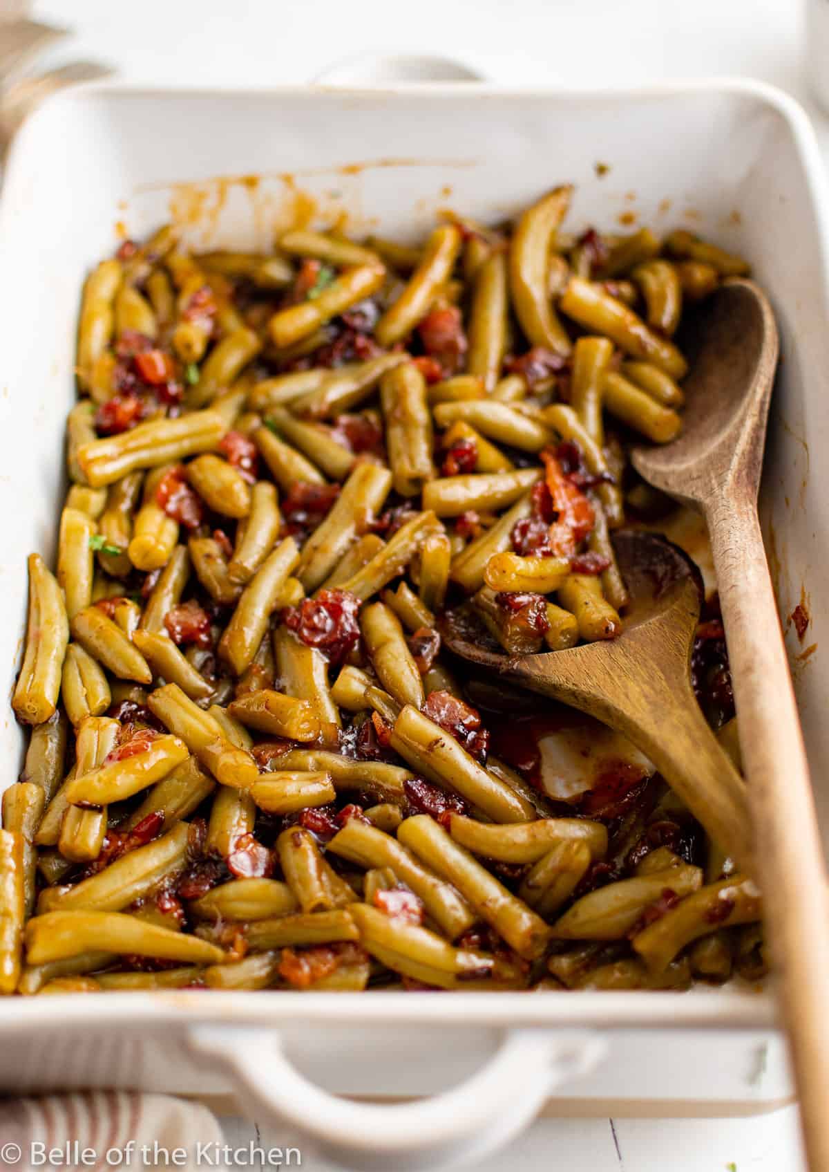 This recipe for brown sugar bacon green beans brings a sweet and savory twist to traditional green beans with the addition of crispy bacon, caramelized onions, and a buttery brown sugar glaze.