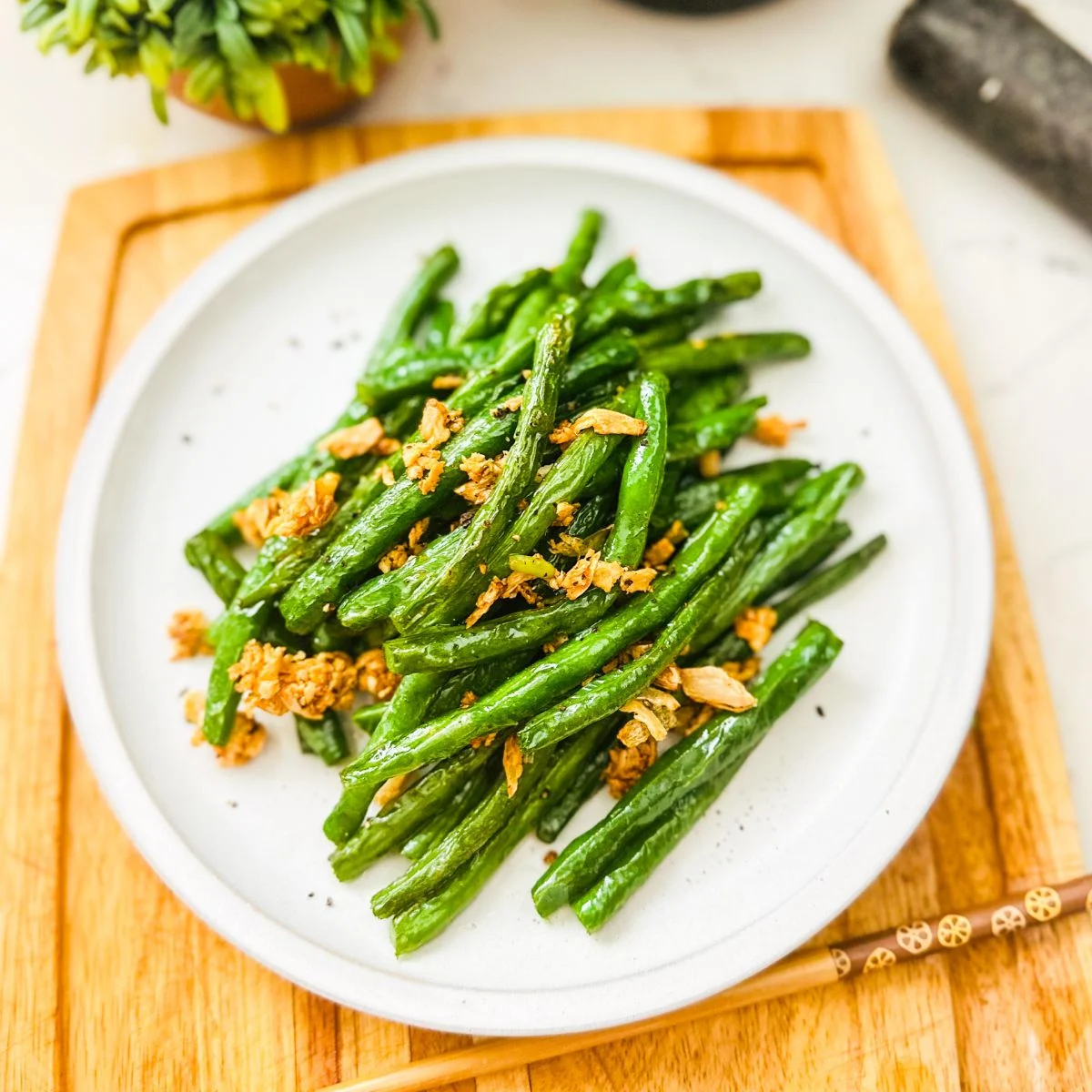 Easy Air Fried Green Beans with Garlic Butter Sauce
