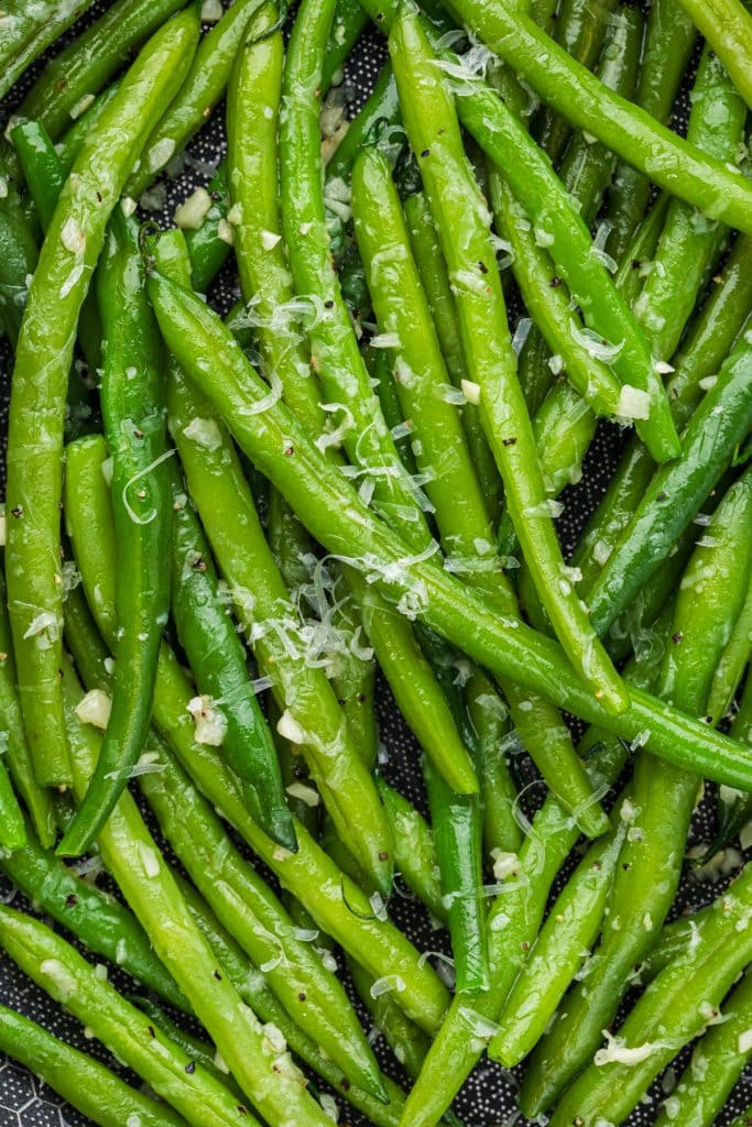 Ready in minutes, these green beans are boiled to crisp-tender, sautéed with a delicious garlic butter seasoning, and finished with a sprinkle of Parmesan. Go to recipe.