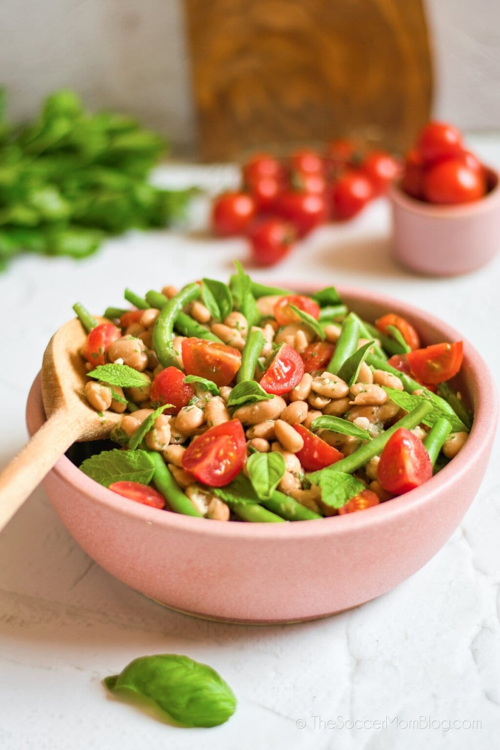 Simple, flavorful ingredients combine to make this Mediterranean Bean Salad a wonderful light dinner on its own or fresh side dish served alongside your favorite protein!