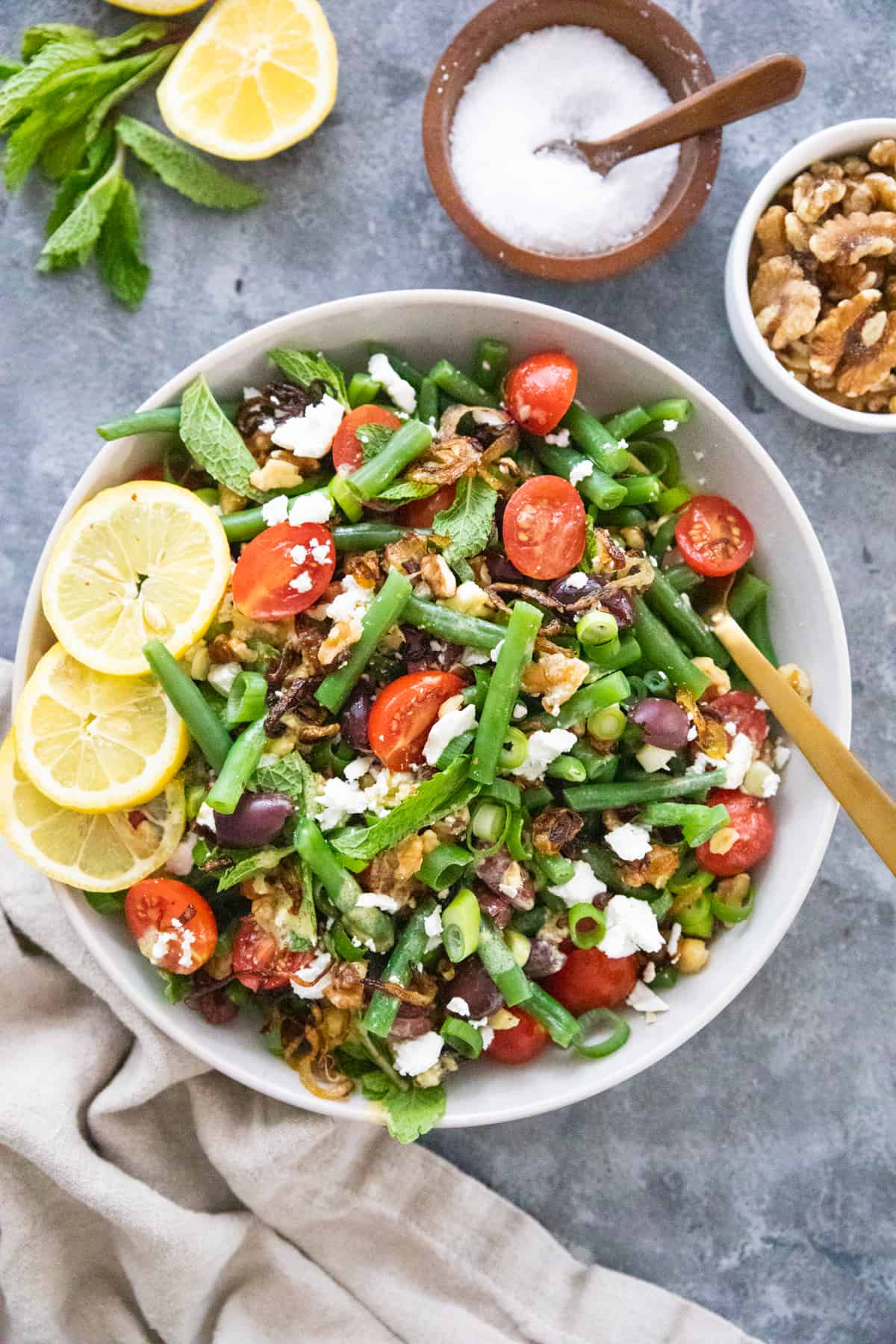 This Mediterranean-style green bean salad is fresh, flavorful, and ready in just 20 minutes! Topped with crispy shallots and creamy feta, it offers the perfect mix of crunch and tang in every bite.