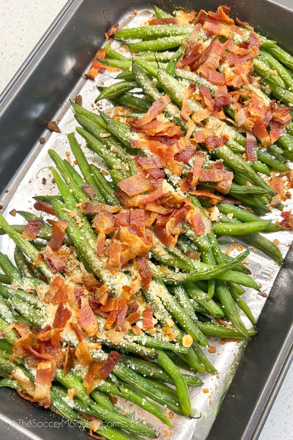 Tangy, cheesy, and with a touch of crispy bacon, these Parmesan Roasted Green Beans are an easy and flavorful 20-minute side dish that steals the show! Go to recipe.