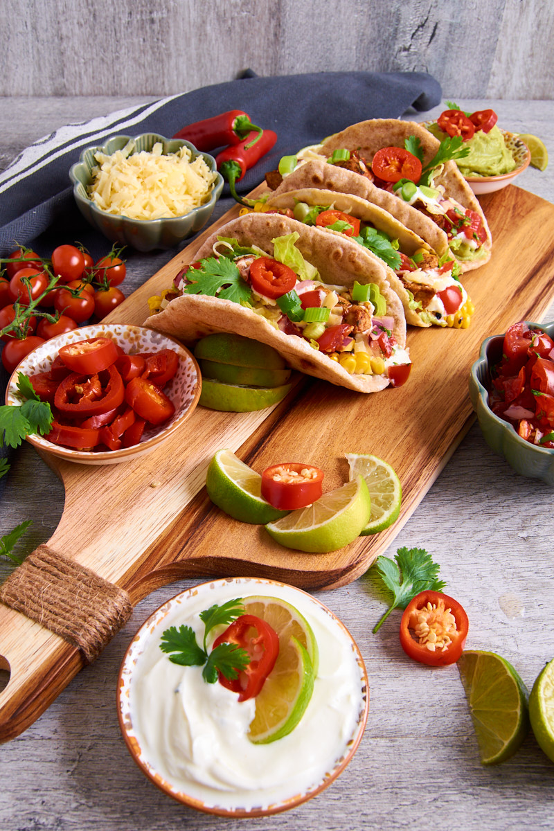 Topped with layers of crunchy lettuce, fresh, charred sweetcorn, homemade zingy salsa, and vibrant spring onions. Finished with a sour cream-yoghurt-lime drizzle and grated cheddar. Go to recipe.