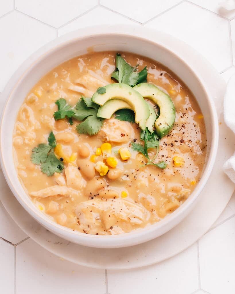 Healthy White Chicken Chili that’s creamy and satisfying. This easy recipe is SO tasty, with secret tricks to layer in rich flavor in less time. Go to recipe.