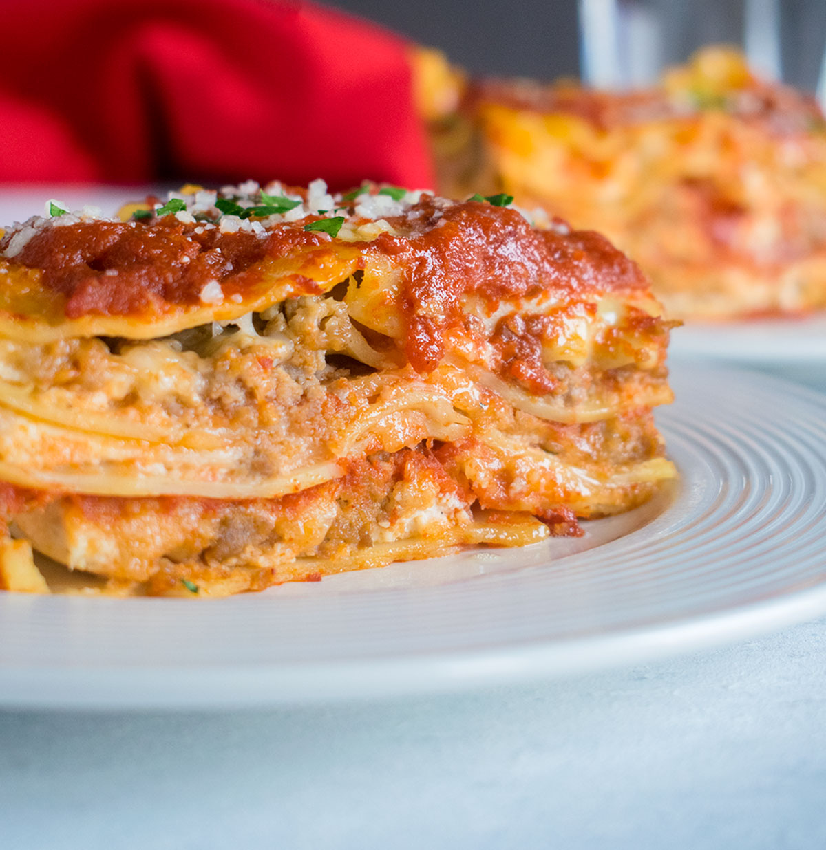 Flavorful layered pasta with rich bolognese meat sauce, white bechamel sauce, and full of melted cheese. Go to recipe.