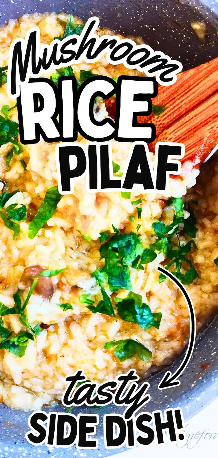 This mushroom rice pilaf is a great side dish and often chosen alternative to my french fries or mashed potatoes.