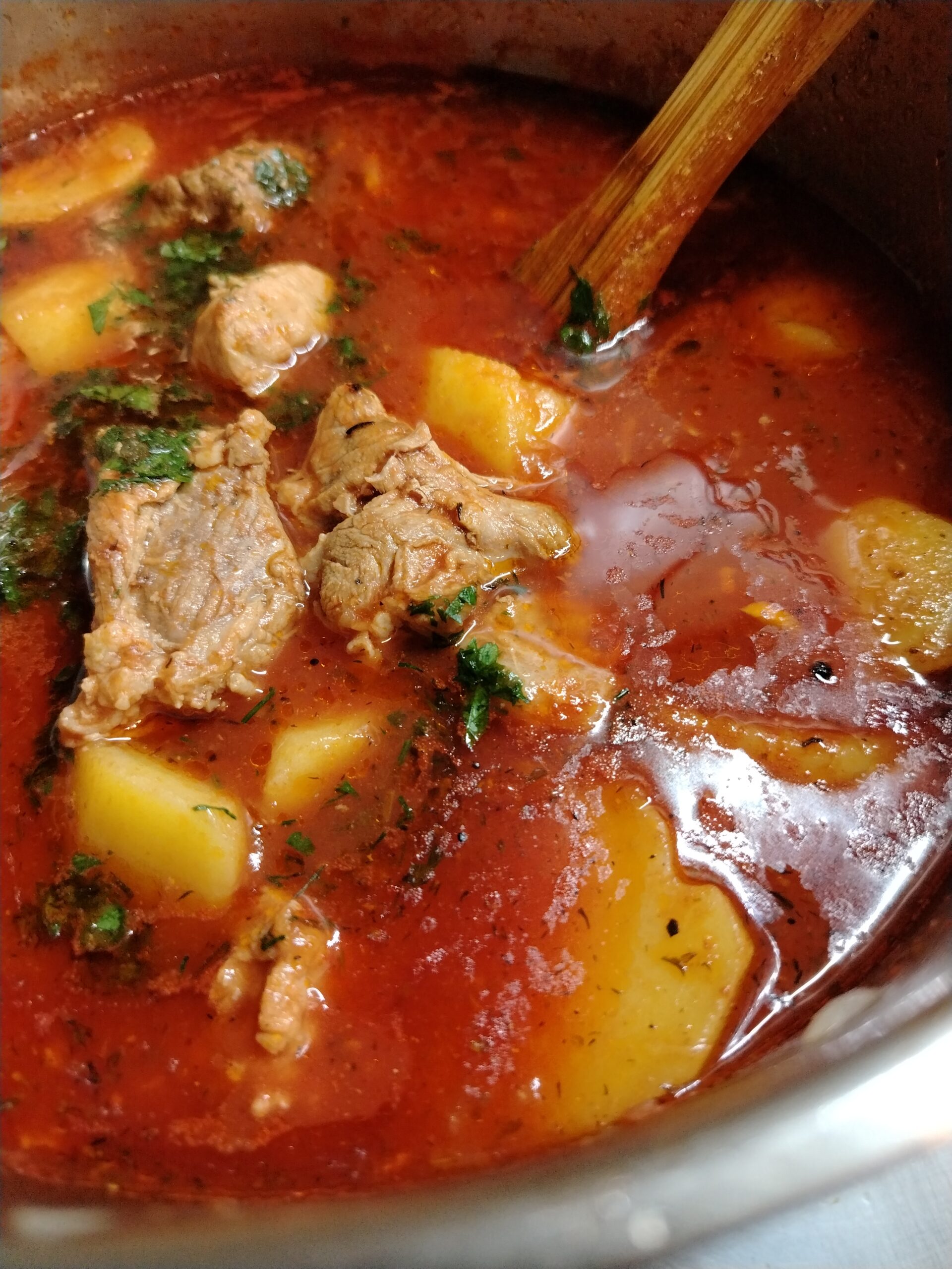 This Romanian pork and potato stew is easy to make, hearty and full of tastiness. I’m cooking it all year long and you can easily make it vegetarian leaving the meat out.
