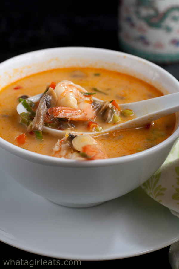 Thai coconut soup is a delicious, not too spicy, curry-based broth, with fresh shrimp, and vegetables. Go to recipe.